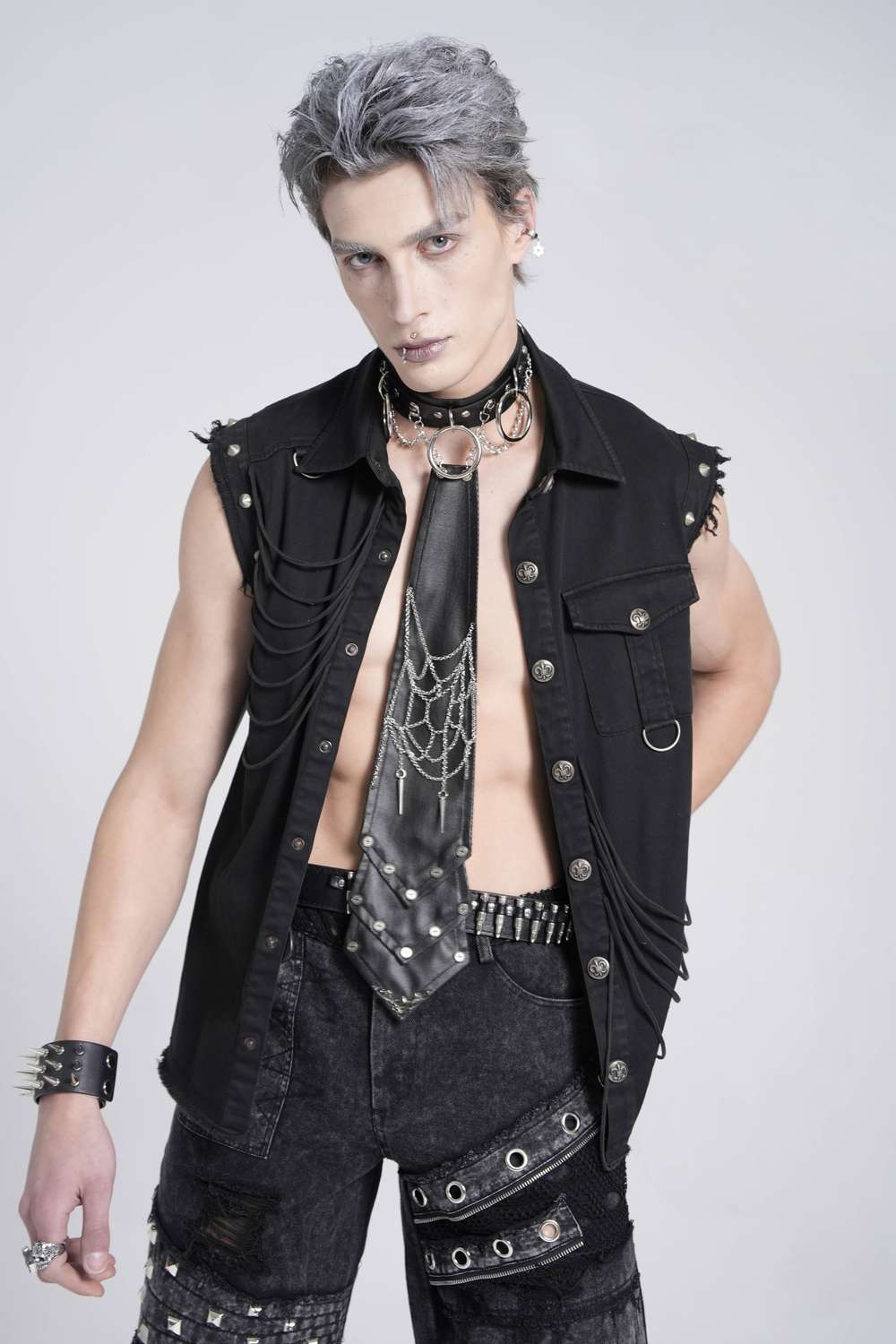 Die Punk Spider Web Chain Tie Krawatte von Devil Fashion fällt mit Ihrer markanten Spinnennetz‑Metallkette als stylisches Detail auf.
