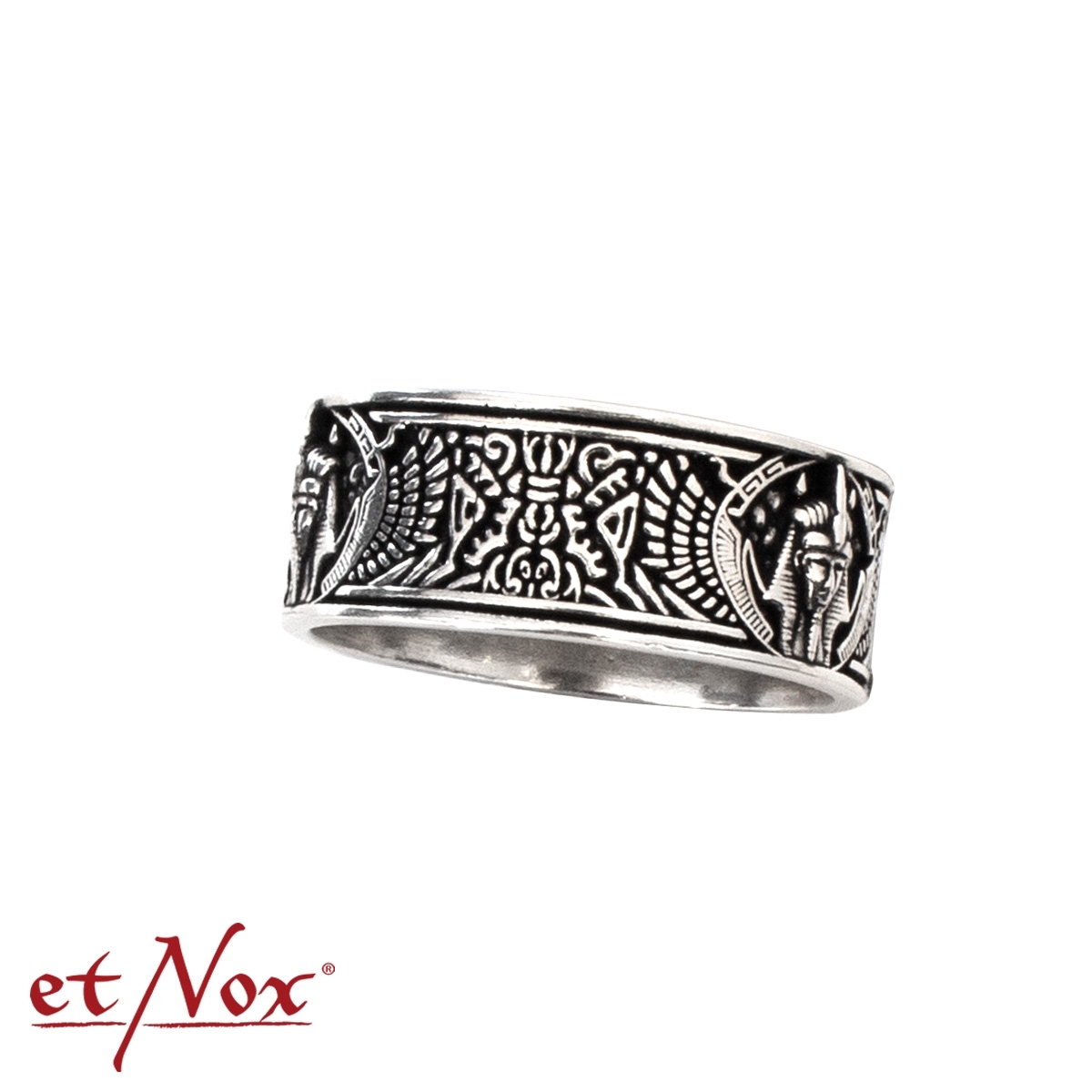 Das Pharao-Motiv prangt mittig auf dem Ring und ist von weiteren Dekoelementen umgeben.