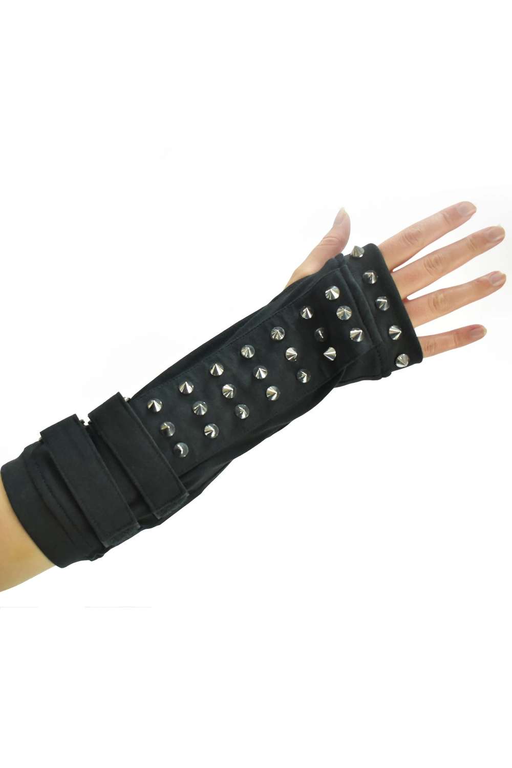 Coole, fingerlose Armstulpen aus weichem Baumwollstoff mit silbernen Spitznieten - runden dein Outfit an kalten Tagen super ab!