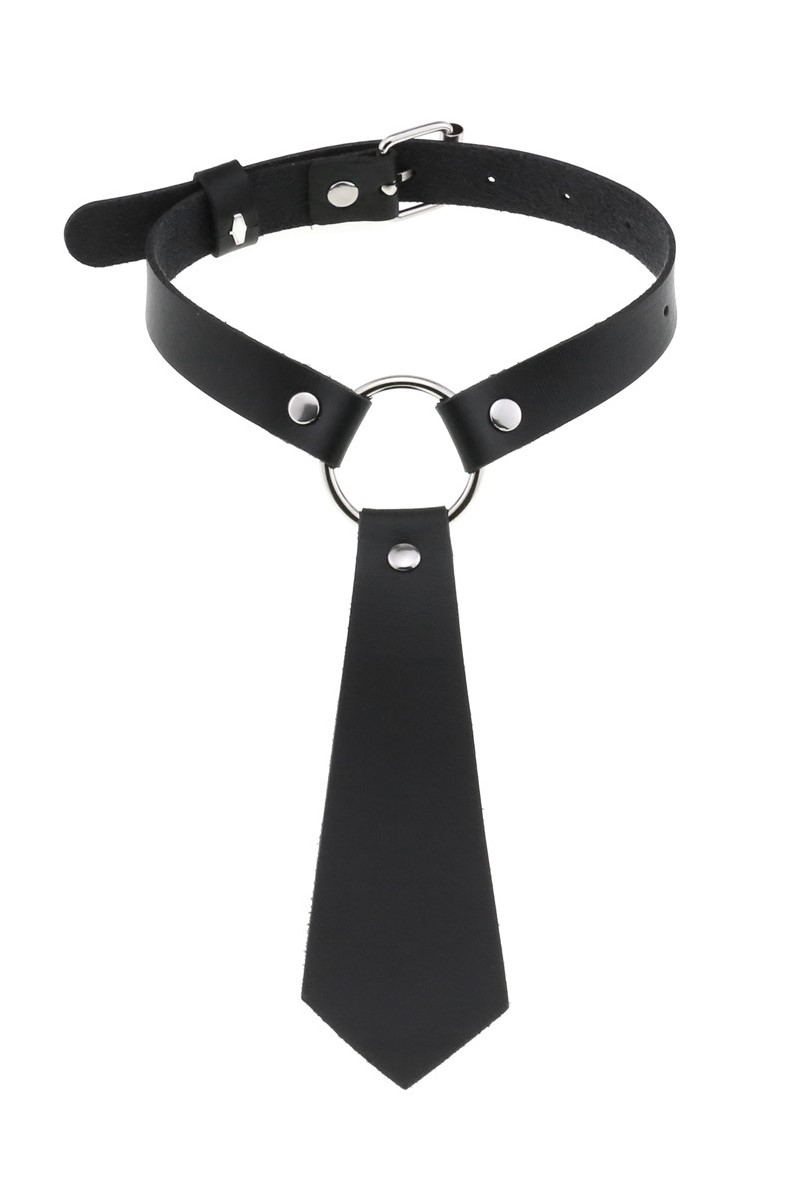 This special choker combines classic tie design with modern alternative fashion. The striking metal ring adds a stylish accent, while the adjustable buckle closure ensures optimal hold and a custom fit. Made of vegan leather, this accessory is not only stylish, but also animal-friendly.
