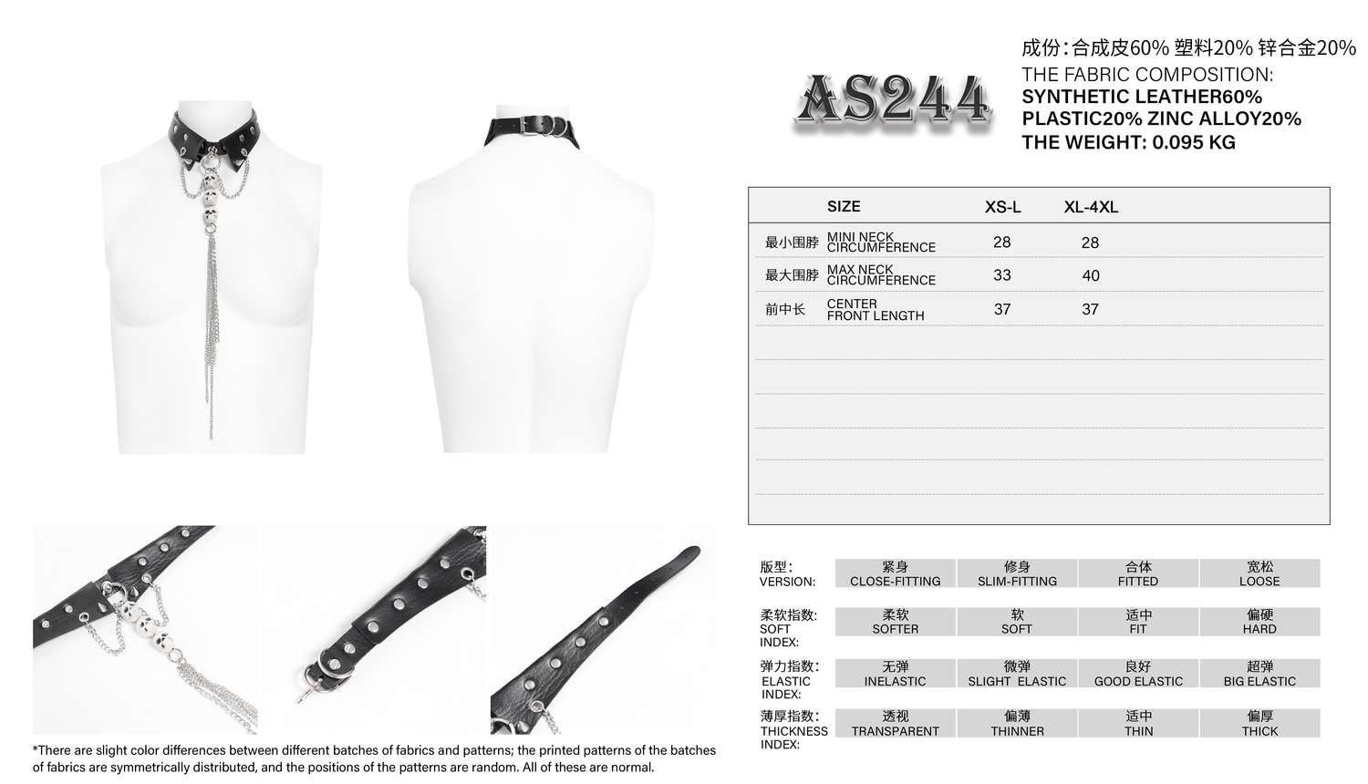 The Devil Fashion Skull Stud Chain Choker AS244 brings bold edge to any outfit with its layered design, featuring skull studs and linked chains on a black faux leather collar. Its adjustable buckle closure ensures a comfortable fit around the neck, and the metal details lend texture and attitude. Ideal for gothic, punk or alternative ensembles, this choker pairs well with both casual and dressy looks, adding a statement finishing touch.