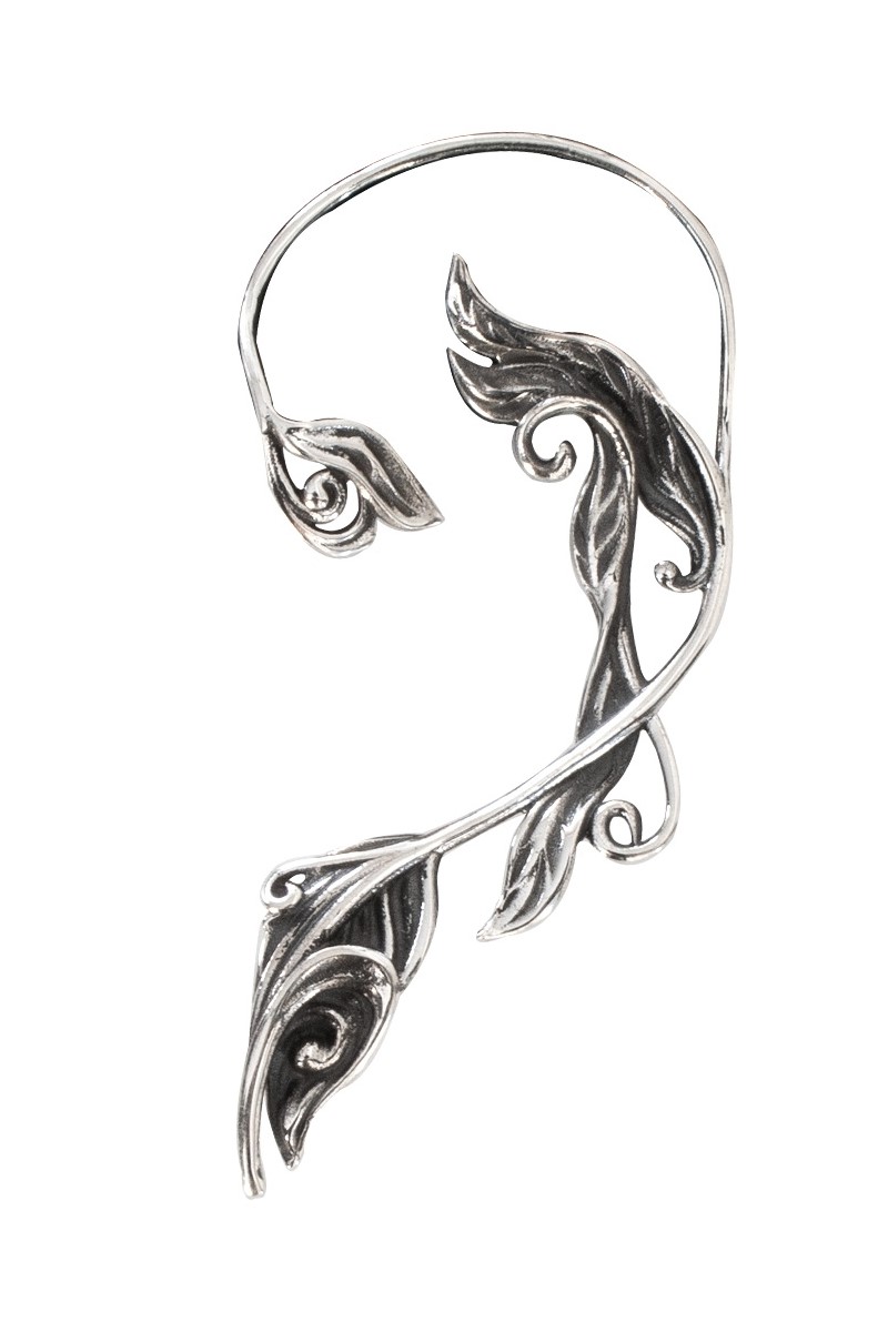 This delicate and elaborately crafted earring impresses with its elven design and playful elements.
