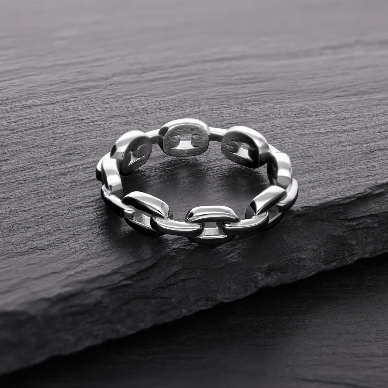 Do you love simple elegance and high-quality jewelry? Then the Link Chain Ring from Wildcat is just right for you! Its classic design makes it a real all-rounder – perfect for wearing on its own as a statement piece or combining and stacking with other rings. Made from high-quality 316L stainless steel, it is not only particularly durable and skin-friendly, but also impresses with its elegant shine. A piece of jewelry that combines style and quality.