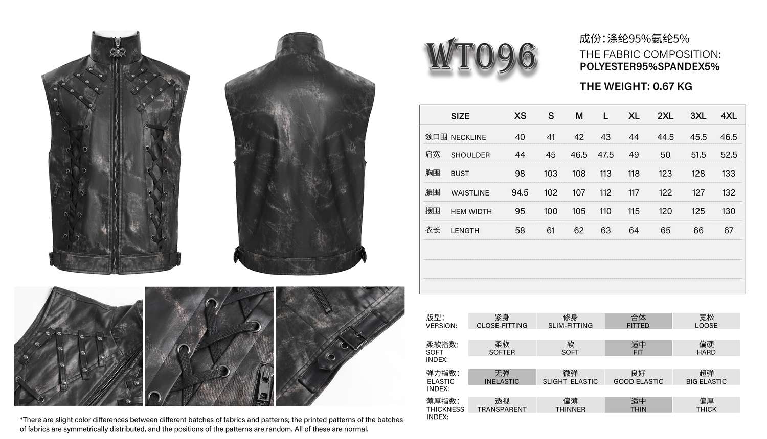 The vest is versatile and easily styled with punk, gothic, or rock outfits.