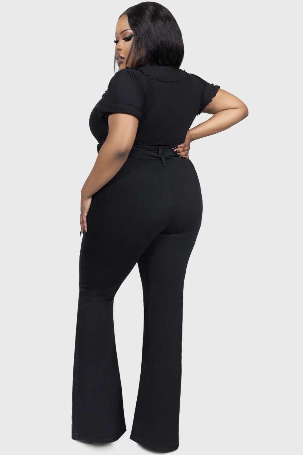 • Flared “bell bottom” cut