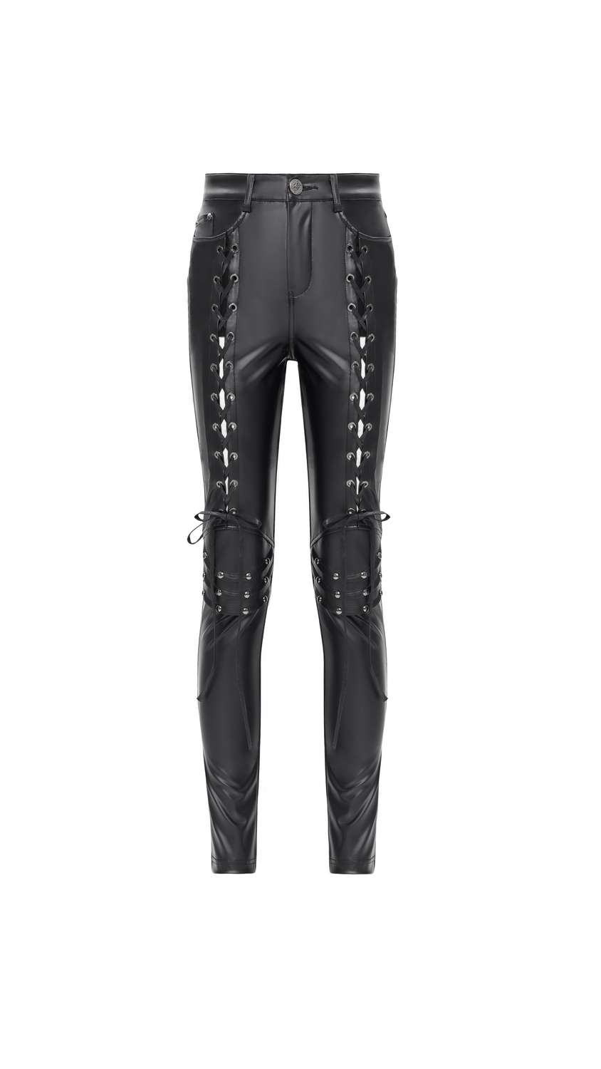 Die Devil Fashion - Wetlook Faux Leather Pants with Lacing vereinen markanten Wetlook-Style mit verführerischer Schnürung.