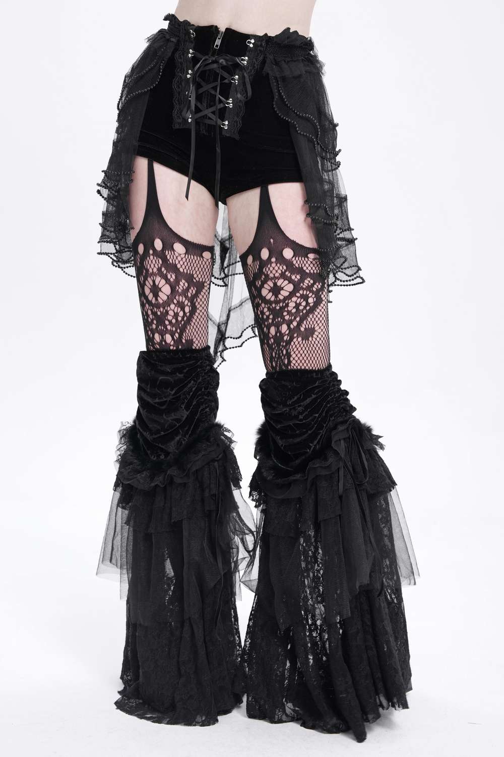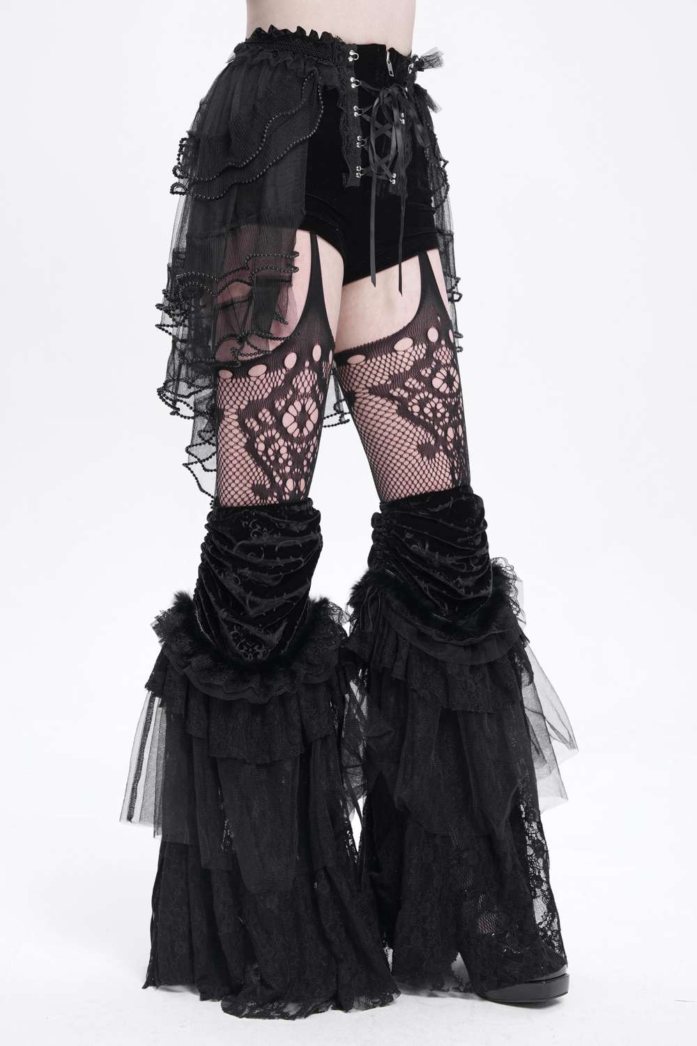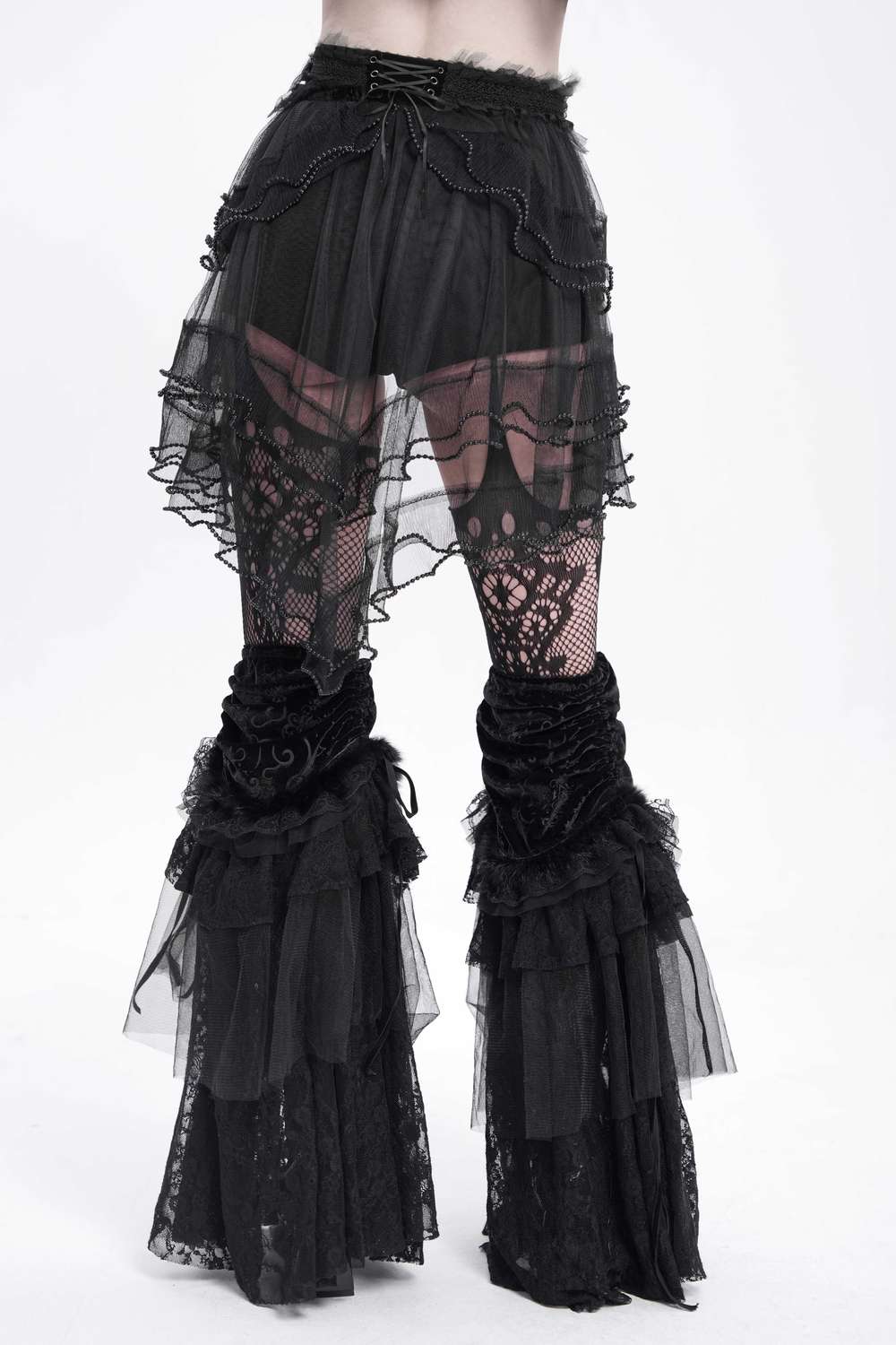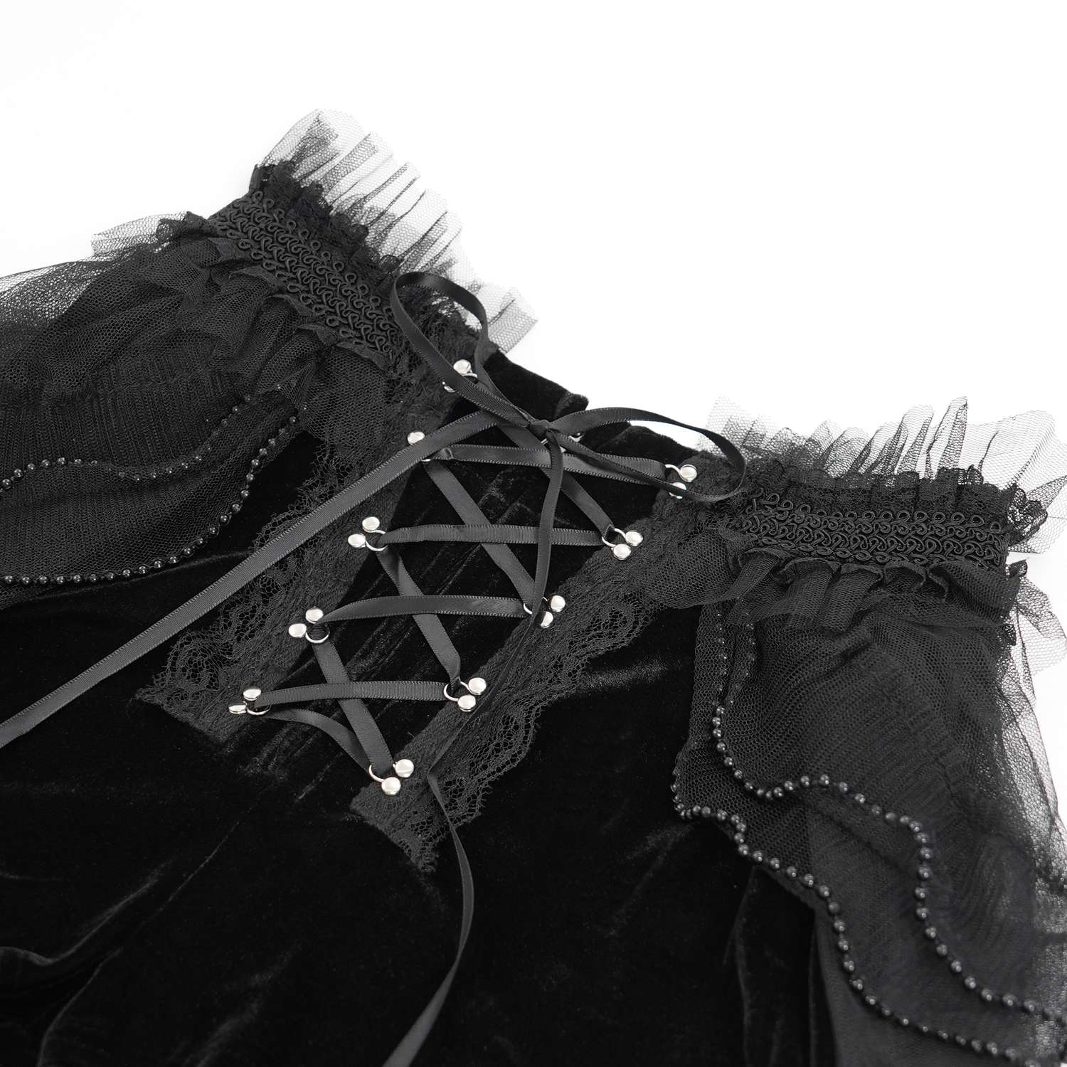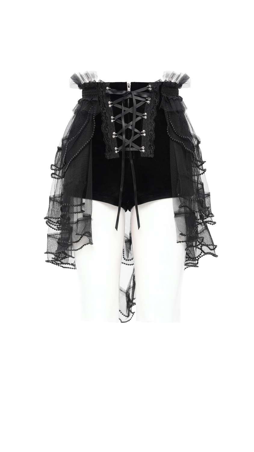 Die Devil Fashion - Velvet Ruffle Bloomers Shorts PT269 vereinen verspielten viktorianischen Charme mit modernem Gothic-Stil.