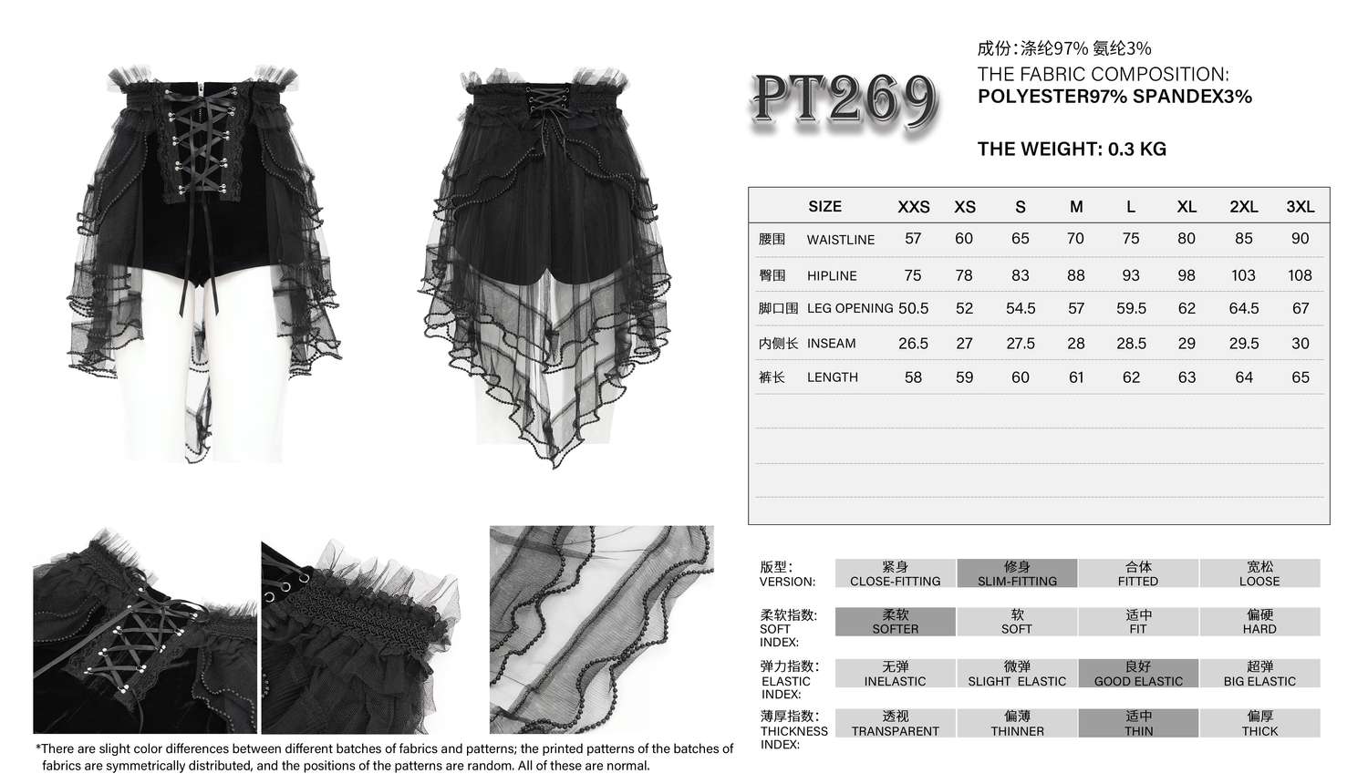 Material: 97% Polyester , 3% Elasthan