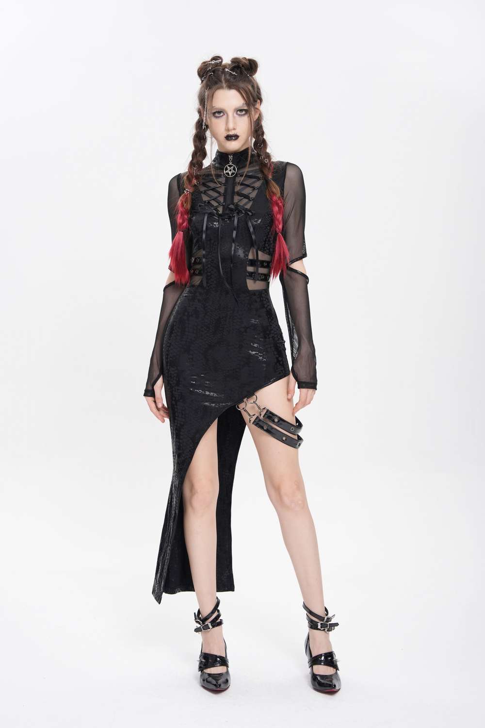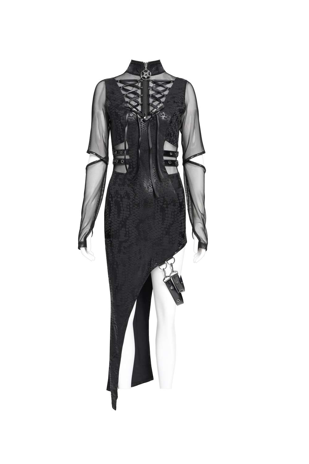 Dieses Kleid eignet sich perfekt für Clubwear, Gothic‑Events oder jeden Anlass, bei dem ein auffälliger, mystisch‑düsterer Auftritt gewünscht ist.