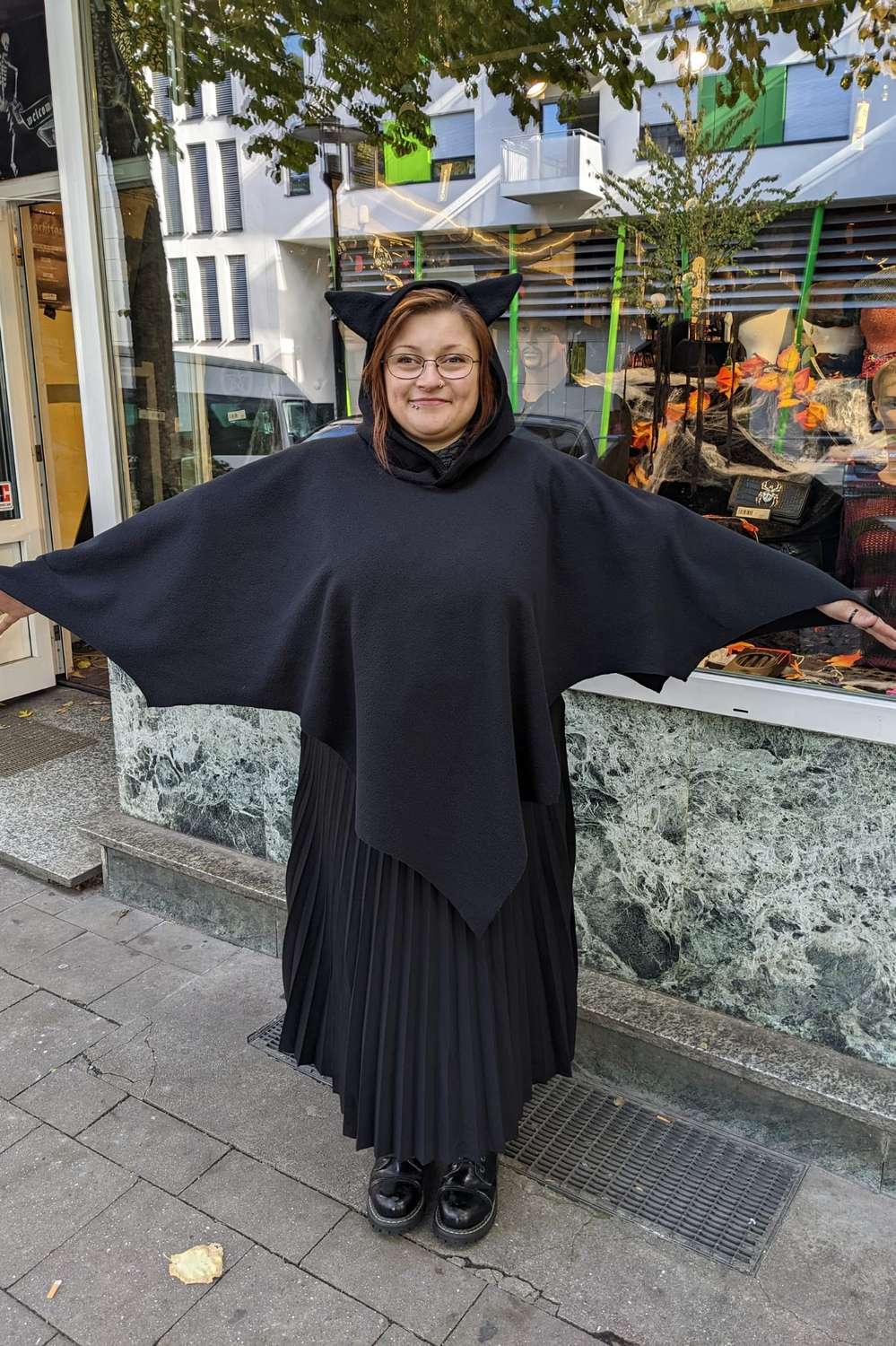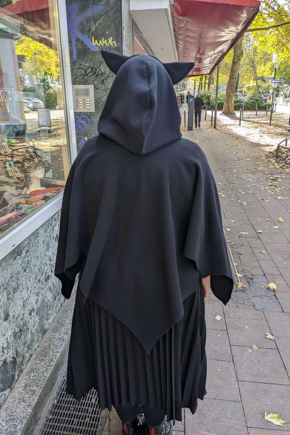 Dein Kuschelcape aus weichem Fleece  mit großer Kapuze und kleinen Fledermausöhrchen willst Du nie wieder ausziehen.
