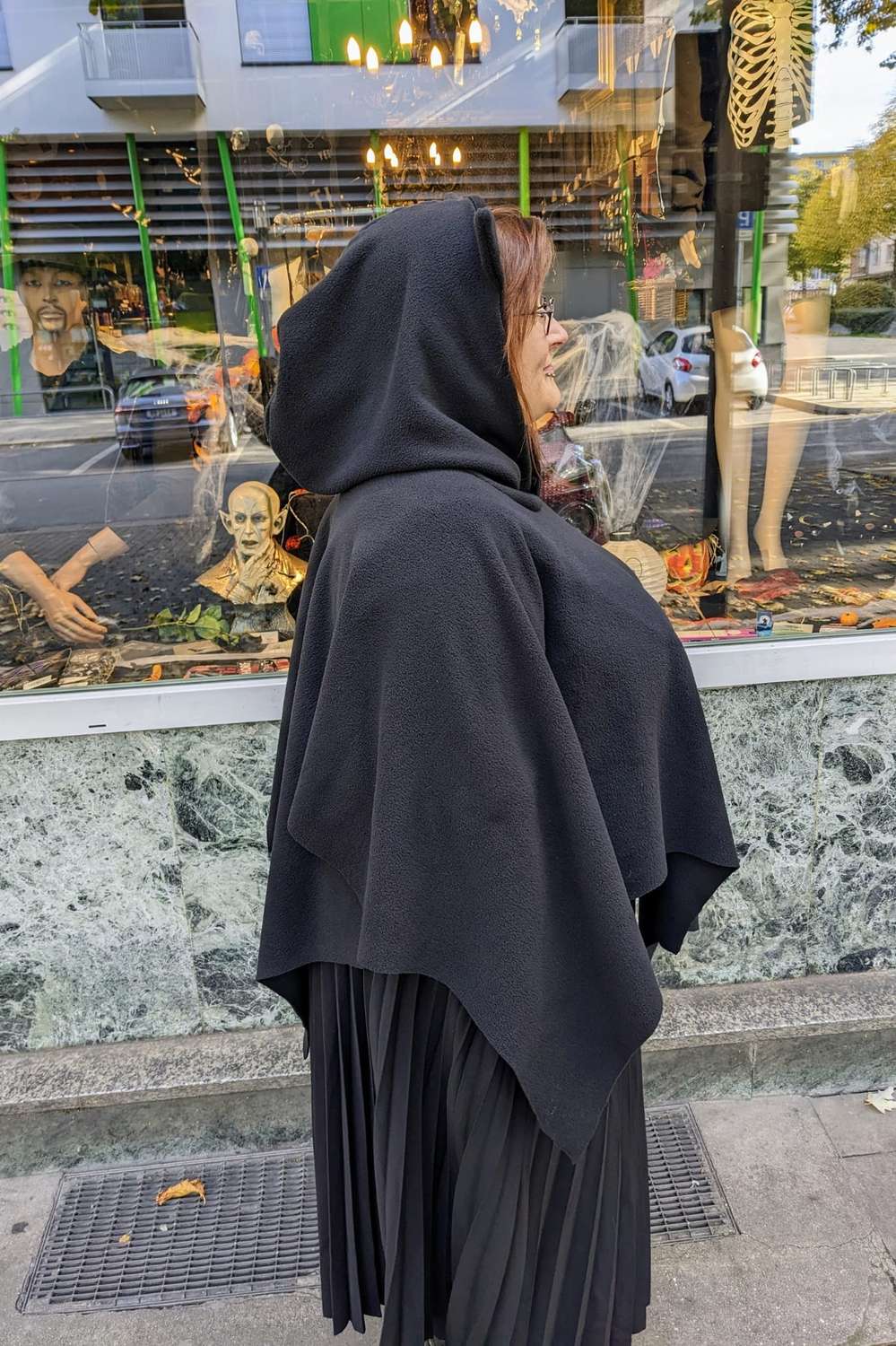 Maße: Breite ca 1,85 m von Hand zu Hand, Länge ohne Kapuze ca 75 cm