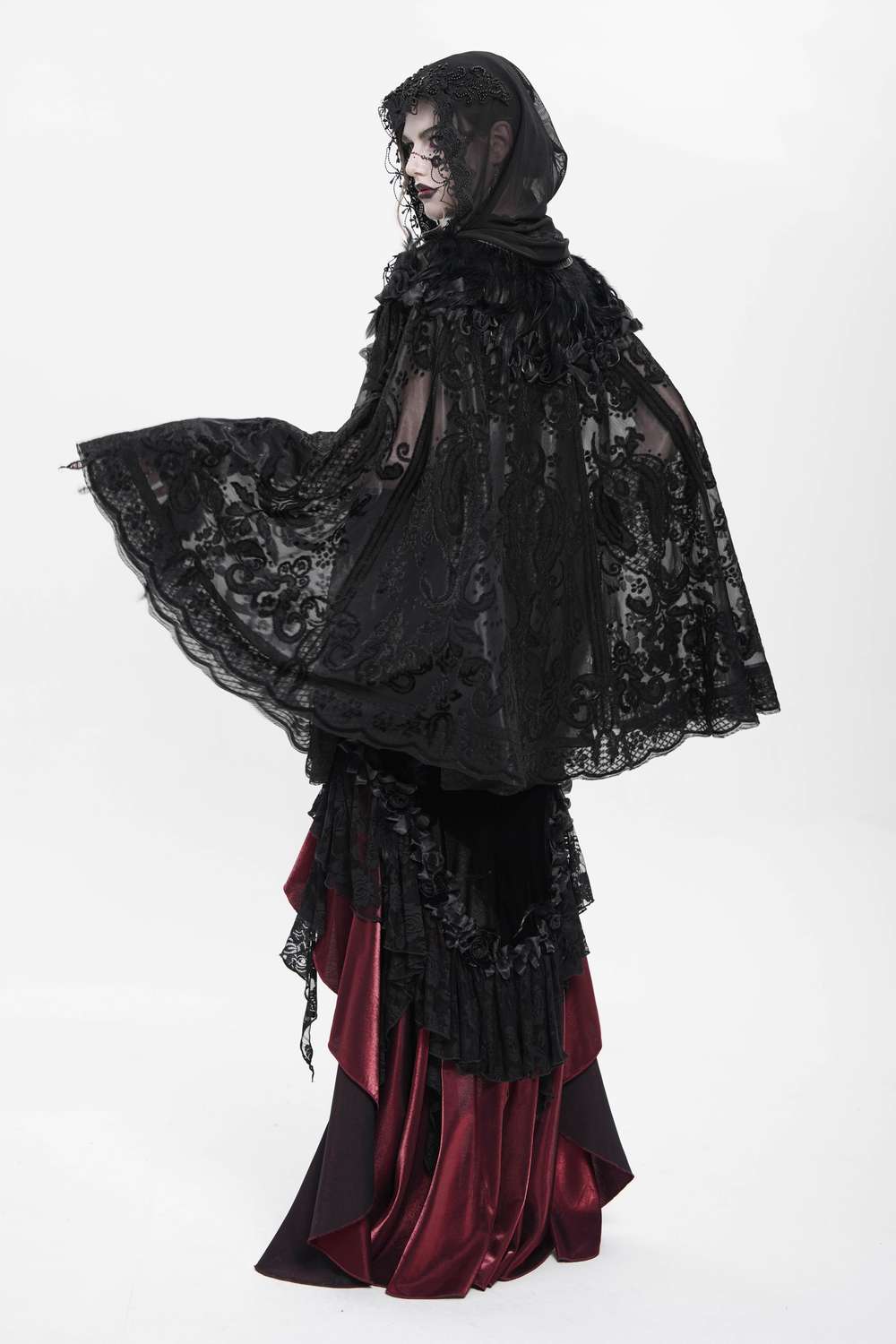 • schwarzes Spitzen‑Cape