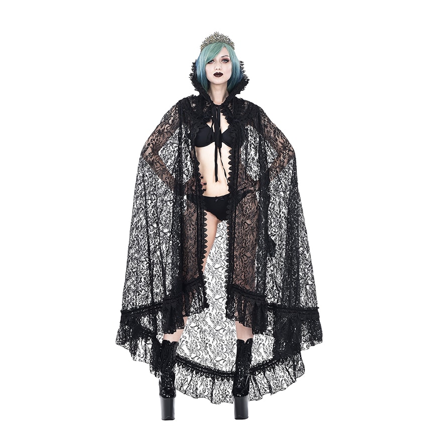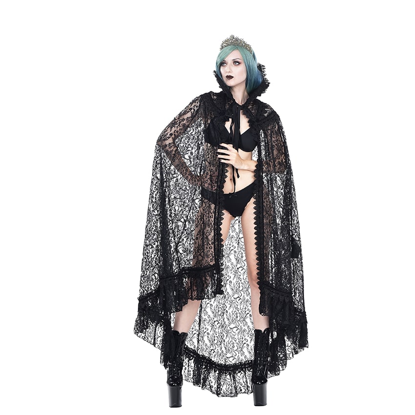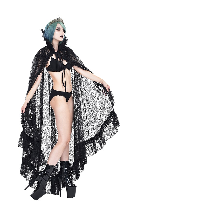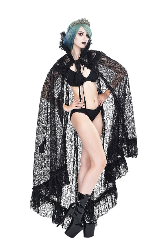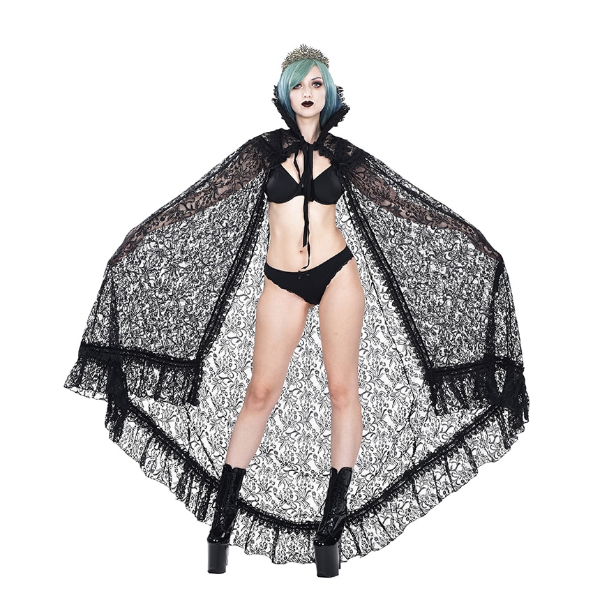 Dieser atemberaubende Spitzenumhang ist ein echtes Gothic-Statement und verleiht jedem Outfit eine dramatische, elegante Note.