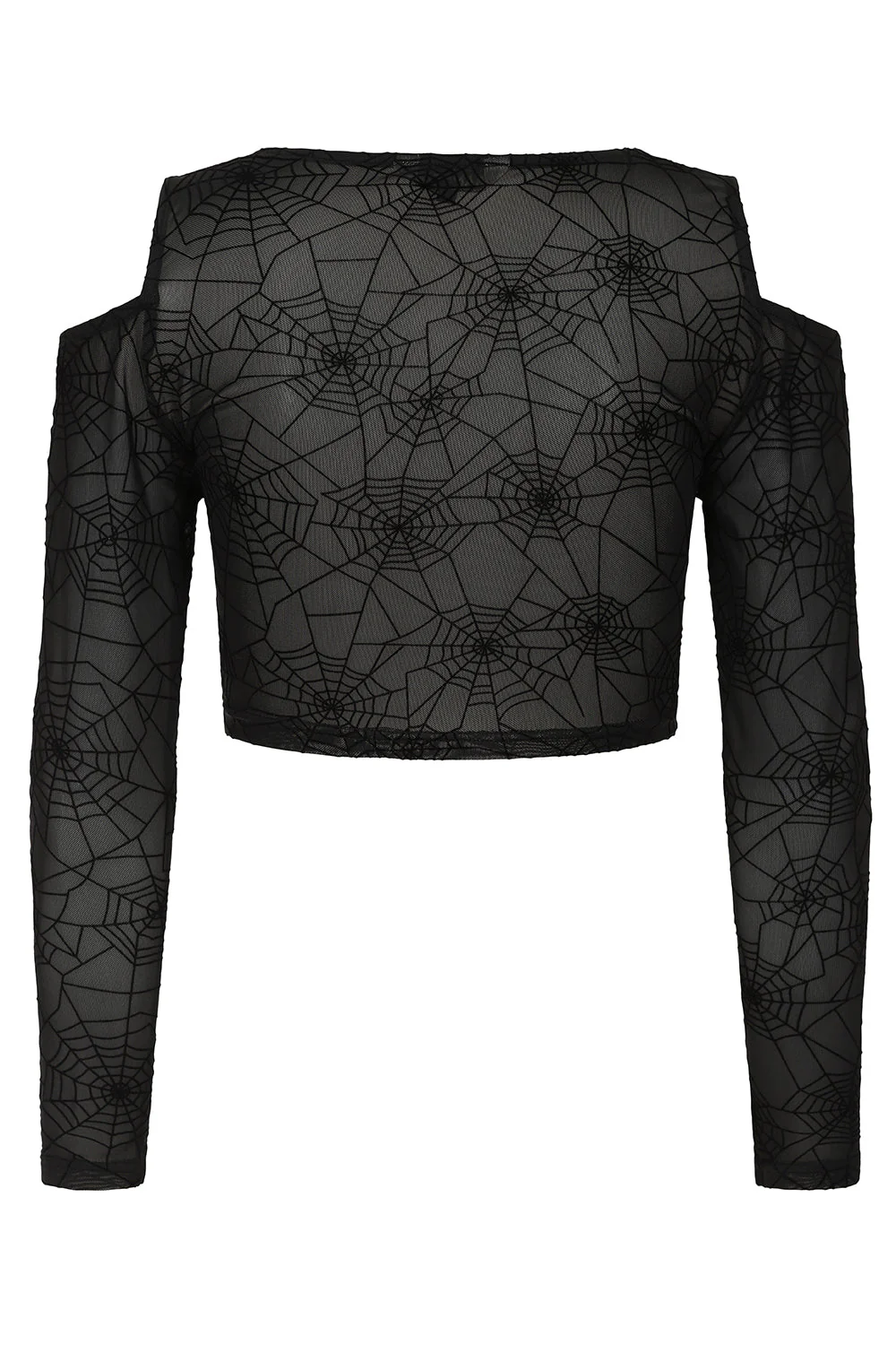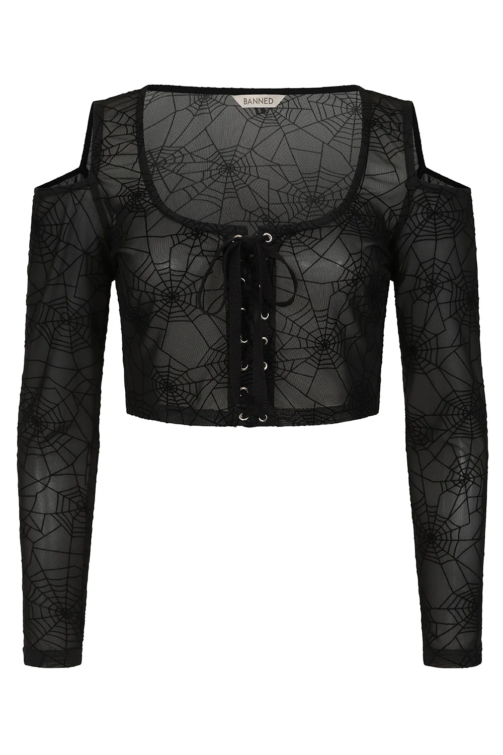 Halbtransparentes Mesh-Top mit Spinnnetzmuster, Zierschnürung und Schulterausschnitten für einen klassischen Gothic-Look!