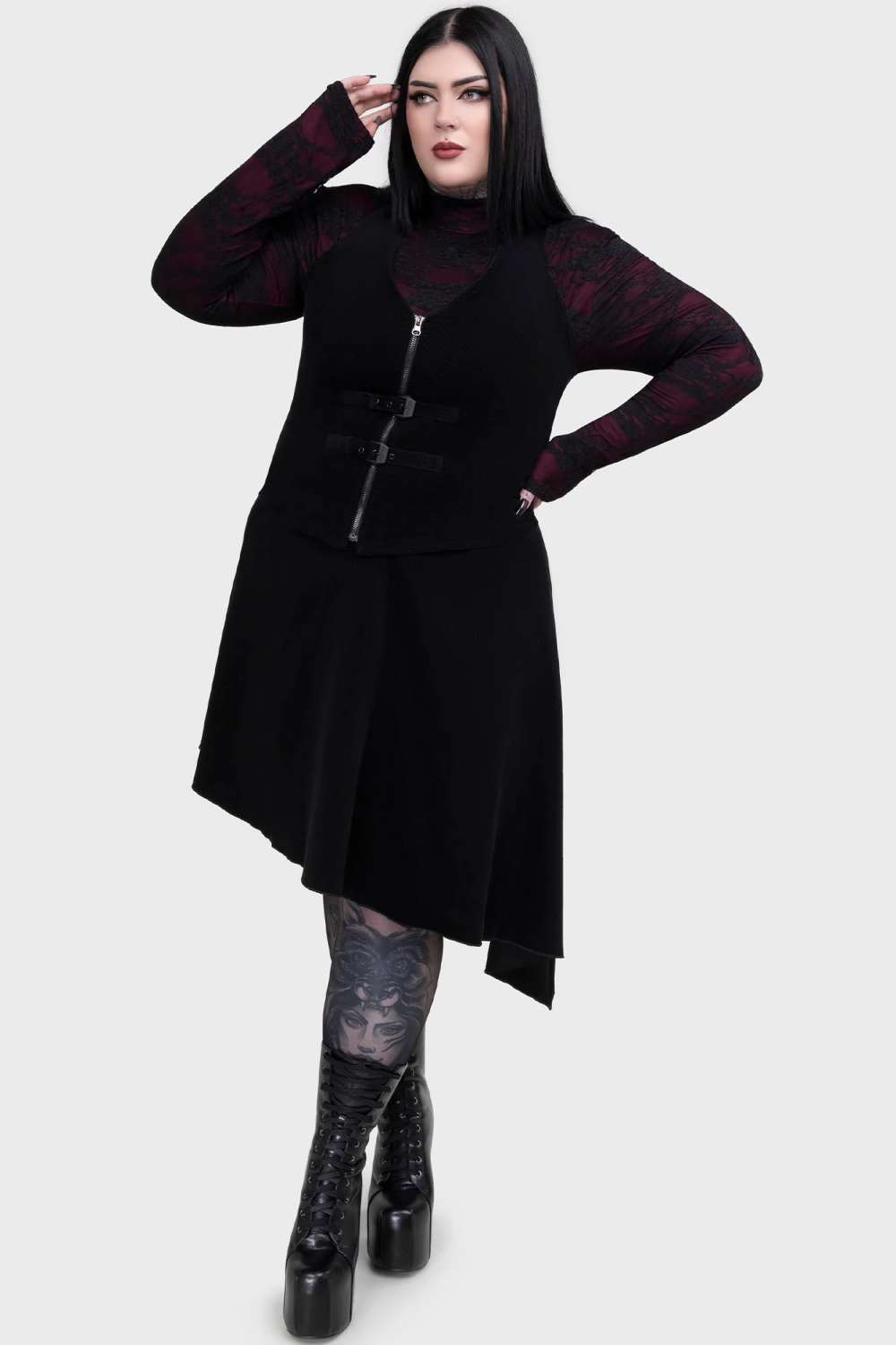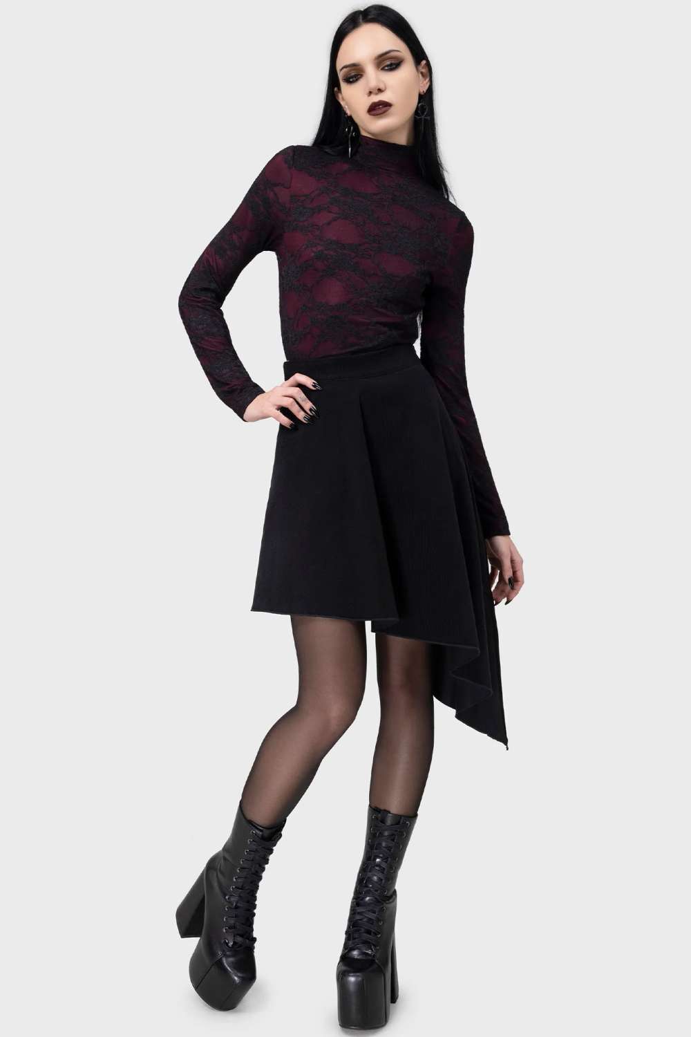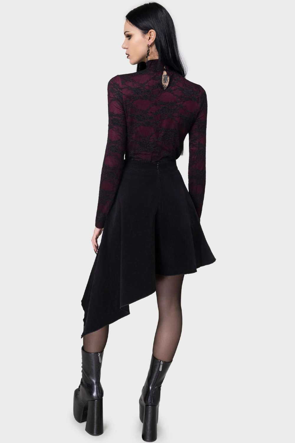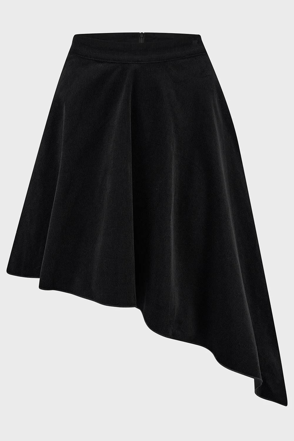 Stylischer Midi-Rock mit asymmetrisch zulaufendem Saum.