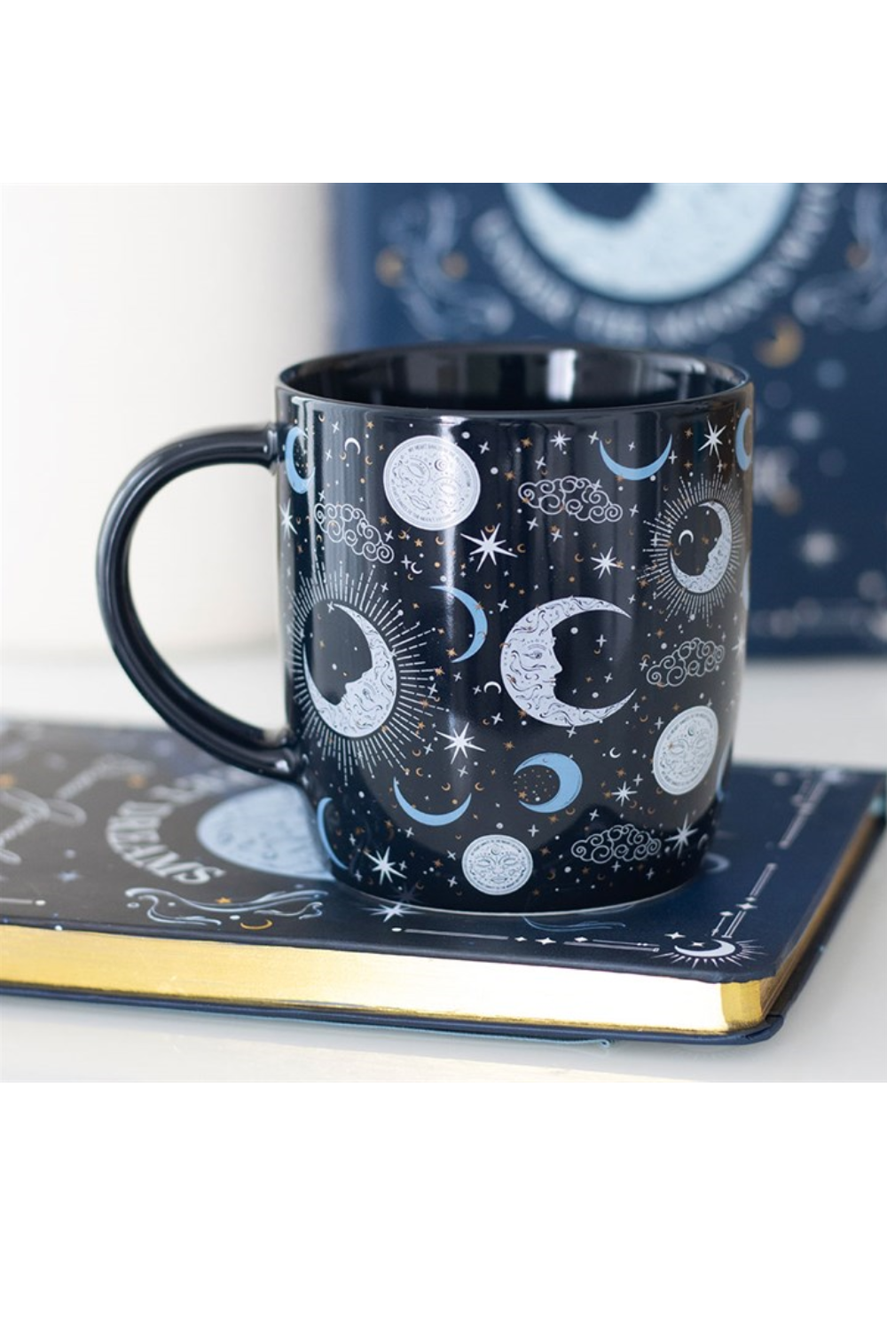 Die Blue Moon Print Tasse von Something Different lädt dich ein, deinen Morgen oder Abend unter dem Zeichen des Mondes zu verbringen.